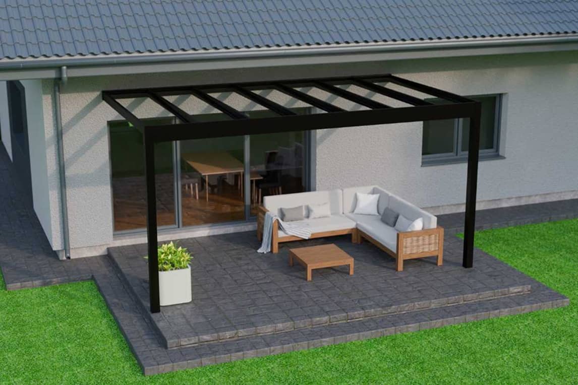 A flat-roof glass veranda combining style and practicality. Ideal for low-pitched roofs and tight spaces, yet still offering a 7m span on 2 posts.